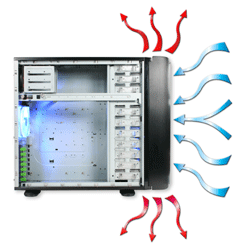 Most people will concern the heat will stay inside the case because of the front intake fans. It will not be a problem because the heat will be taken out from the gap between the front door and the front bezel.
